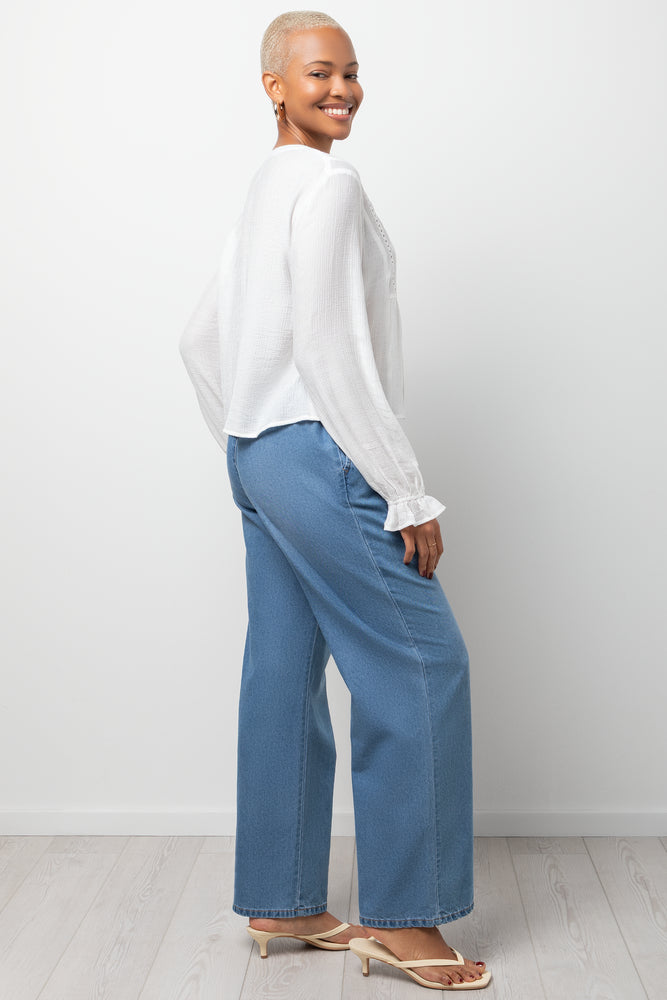 Flowy long sleeve peasant blouse in a pure milky white. Romantic details meet everyday wearability.